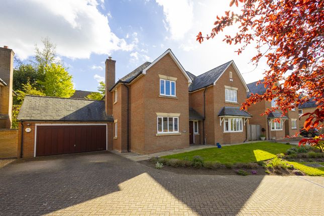 The property sits on a generous plot of 0.24 acres with well-maintained front and rear gardens. The front garden is mainly laid to lawn with mature planting, alongside a driveway providing off-road parking for several vehicles and access to the garage.
