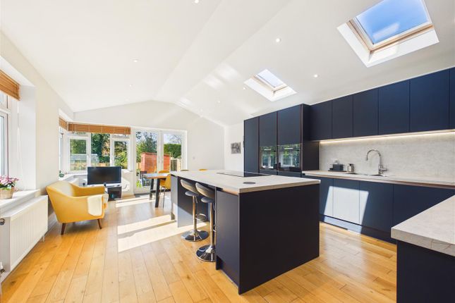 The living areas feel warm and considered, with Karndean flooring, solid wood detailing, a feature fireplace, and patio doors opening onto a south-facing garden that brings indoor-outdoor living to life.