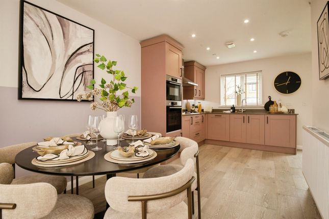 An open-plan space connecting seamlessly via wooden French doors. The living area benefits from a double glazed bay window to the front, radiator and continuation of laminate flooring. The dining area offers a further radiator and direct access to the kitchen.