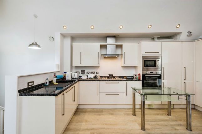 The property is entered into a spacious entrance hallway providing excellent coat, bag and general storage, including built‐in cupboards, with a step rising to the main apartment landing which itself offers further storage potential or space for a desk or study area. From here, doors lead to the bedroom, lounge, kitchen‐diner, bathroom, separate WC, and an additional useful storage cupboard.