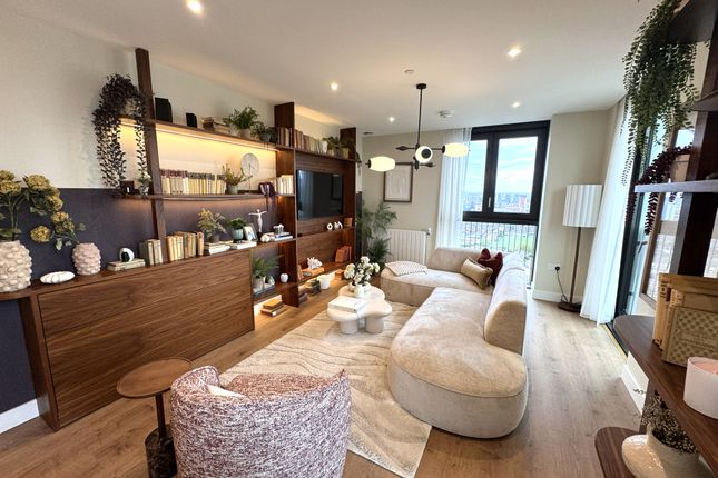 A bright one double bedroom apartment with park views in the historic Television Centre in White City. Situated on the fifth floor the apartment offers generous space comprising open plan living space with bespoke Italian kitchen and sliding doors leading to the private balcony with uninterrupted park views. The principal bedroom offers bespoke built-in storage and the advantage of large windows allowing for plenty of natural light to enter the apartment. The bathroom adjoins via the walk-