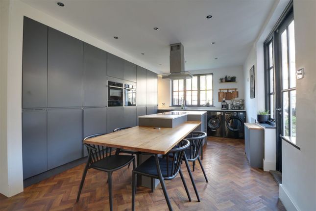 Overlooking open space | This five bedroom home features a large open-plan kitchen with dining and family areas, and French doors onto the south-facing garden. You will also find a separate formal dining room and a spacious lounge. Upstairs are four double bedrooms, including the en suite main bedroom, a single bedroom and a family bathroom. Double garage & 4 parking spaces.
