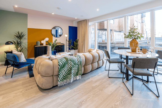 On the upper levels, this 753 sq ft 2-bedroom Shared Ownership apartment offers a private west-facing balcony with sweeping skyline views. Inside, the 7.94m kitchen/living/dining area provides an easily furnishable space, fully fitted with Bosch and Hotpoint appliances, a Hotpoint washer-dryer. Two storage cupboards are also available within the home. The master bedroom (5.08m) features an en-suite shower room and fitted wardrobe, complemented by a second double bedroom (5.20m). The main bathroom includes a full-sized bath with overhead shower and heated towel rail. Underfloor heating runs throughout, with Hyperoptic wiring available for ultra-fast broadband - perfect for working from home.