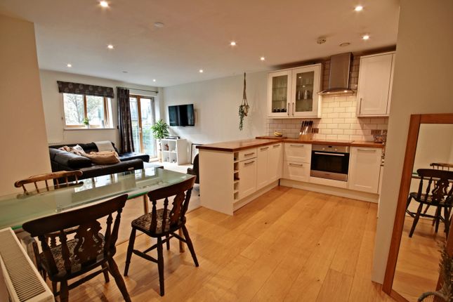 The contemporary kitchen is a standout feature, equipped with Bosch integrated appliances and sleek, modern cabinetry. The stunning stone worktops provide ample space for meal preparation, while the LED downlighters create a warm, ambient atmosphere, perfect for entertaining or relaxing after a long day. The interiors are further enhanced by engineered wood flooring in a soft, pale tone, giving the space a bright and inviting feel.