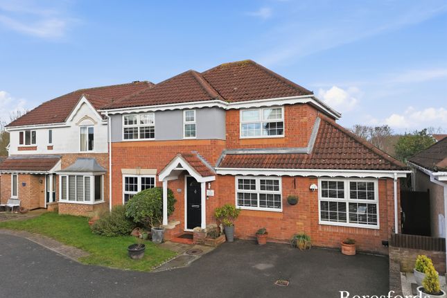 The separate living room is situated at the front of the home, providing dedicated space for the family to relax together. At the rear of the home, the open-plan kitchen and dining area looks out over the garden and has French doors that bring in the sunshine during the warmer months. From the kitchen there is a utility room, which has an external door that is useful on laundry days or for keeping muddy shoes and paws under control. In the hallway is the cloakroom, along with two convenient storage cupboards.