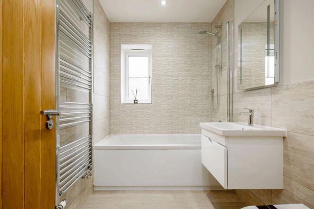 Stairs rise to the landing where there is the airing cupboard housing the hot water cylinder and doors to the bedrooms and bathroom. The bathroom is fitted with a modern suite in white consisting of low level WC, pedestal wash hand basin and bath. There is also a chrome heated towel rail and the walls are Porcelanosa tiles and ceramic tiled floor. There are three double bedrooms, the main bedroom benefits from built in wardrobes and has an en-suite shower room with thermostatic shower controls, chrome heated towel rail and Porcelanosa tiles plus ceramic tiled floor.
