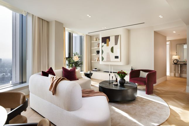 The apartment boasts a fabulous south facing, open-plan reception with a sleek kitchen/dining area with Gaggenau appliances and dramatic, south facing sash windows allowing an abundance of natural light to fill the room whilst encapsulating views of the unique and intricate architecture of the square opposite. The apartment also provides two en suite double bedrooms with a dressing room to the master suite and separate guest cloakroom.