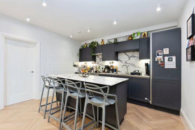 At the heart of the home is a large open-plan living and dining area, creating a bright and welcoming space ideal for both everyday living and entertaining. The stylish kitchen features integrated appliances and a central island, providing excellent functionality for cooking and socialising. Double doors open directly onto a private terrace, offering valuable outdoor space.