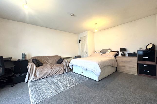 Good sized first floor studio: Well situated on a quiet, well maintained and attractive residential development: Close to town centre, trains and buses: Main living/sleeping area with large bay window plus a full height window allowing lots of natural light with pleasant views: Separate fitted kitchen with cooker and fridge freezer: Secure door entry: Allocated parking: Available now