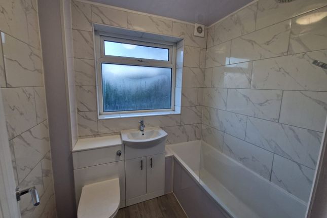 Bathroom White three piece suite comprising of a panelled bath, pedestal wash hand basin, low level WC, shaver point, extractor fan and radiator.