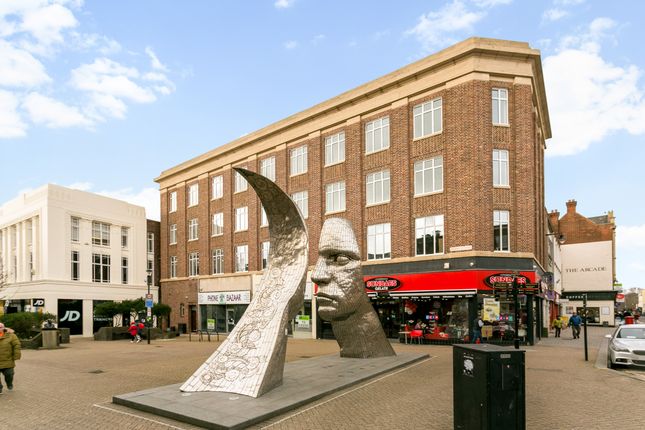 This one bedroom seventh floor apartment is well presented inside and it offers you spacious rooms and a good spec inside. It also enjoys a lovely position in the block looking out towards and over the town centre. The apartment offers you a spacious hallway with cupboards. A 15ft x 12ft living room/dining room with a fitted kitchen off. The kitchen offers you a good range of cupboards and comes complete with appliances. There is a 12ft x 10ft bedroom and a modern fitted bathroom with a shower. In the block you have a security intercom system, a large impressive communal entrance with lockable residents letter boxes, access to two lifts and a communal gym. Outside to the rear of the block you have gated residents parking area and the property is within walking distance to the town centre, station and hospital. EPC Rated C. Call Your Move to arrange your viewing today!