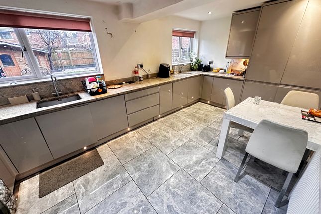 The kitchen, at the rear of the property is a good size, with space for a dining table and houses a separate utility cupboard with space for a washing machine and dryer.