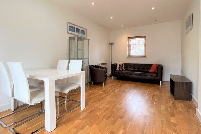 Both bedrooms are generously sized, offering ample storage space and large windows that allow natural light to flood the rooms. The bathrooms are fitted with contemporary fixtures, providing a sleek and clean aesthetic. The property does not include a designated reception room, which enhances the open-plan design, creating a sense of space and light throughout the flat.