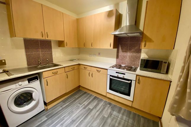 Entering the property is a bright double bedroom with a built-in wardrobe providing excellent storage, a spacious living area, a fitted kitchen with white goods included, and a bathroom with an electric shower over the bath.