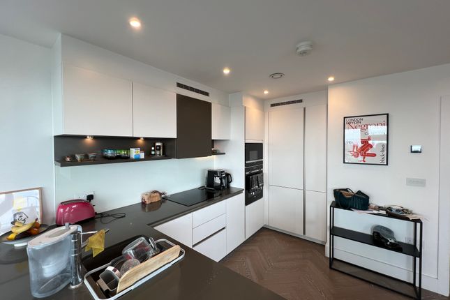 Features sleek modern kitchen space with appliances