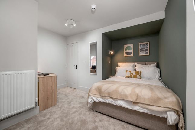 Available 11th may. This modern town house has been expertly refurbished and reconfigured to provide five good double en-suite bedrooms for professional or post-grad sharers. Communal space includes entrance hall with utility cupboards housing washing machine and tumble dryer; spacious dining kitchen with newly re-fitted kitchen including integrated fridge/freezer, dual oven, hob, and dishwasher as well as plenty of storage; dining area; wall-mounted TV; balcony overlooking the enclosed rear garden with bike storage; and driveway for off-street parking in addition to unrestricted on-street parking to the front.