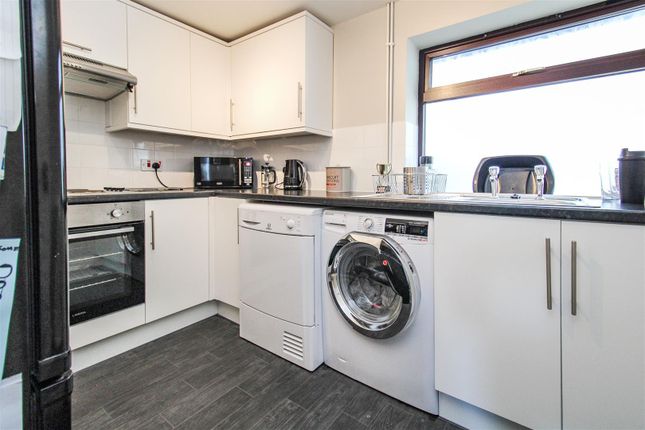 Kitchen: 2.45m x 1.91m (8'0" x 6'3"), Lovely modern kitchen comprising sink, drainer, washing machine, fridge-freezer, freestanding cooker. UPVC double glazed window, wood-effect flooring continuing through from the landing and lounge area. Clean and compact and modern.