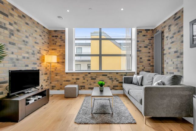 The home’s refined aesthetic continues in the spacious double bedroom. Its neutral colour palette is softly lit through a large sash window, while two full-height wardrobes provide neat storage. The bathroom is wrapped in oversized marble tiling, complete with a walk-in rainfall shower.