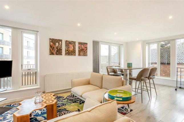 This beautiful east-facing two-bedroom apartment features a bright, open-plan kitchen and living area with a Juliette balcony overlooking Monkfield Lane.