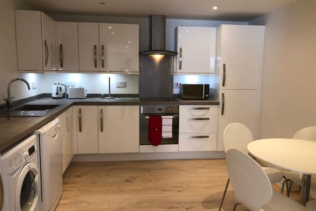 The apartment is entered via a security entrance door into the hallway and comprises of a bright lounge and kitchen on an open plan complemented with laminate flooring and fitted with a range of base and wall units providing good storage, a built-in oven and hob, extractor fan, fridge, and washing machine are also included in the lease. The double bedroom is at the rear of the property and contains a closet. Completing the accommodation is an attractive bathroom fitted with a stylish white three-piece suite featuring a modern walk-in shower, WC and wash hand basin. There is a shared rear garden.