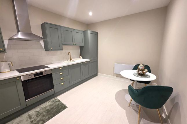 The lounge has a comfortable sofa that unfolds to a sofa bed, Smart TV and broadband are also included. The bedroom area is off the main body of the studio with double bed, large wardrobe with shelving, storage and hanging space. The bedroom is also fully equipped with bedding, sheets, duvet. Pillows and towels. The property is fully geared-up for short-term rentals of 60-90 days and also provides an excellent property for a single/couple looking to rent without the hassle of purchasing furniture and all items required when starting out.
