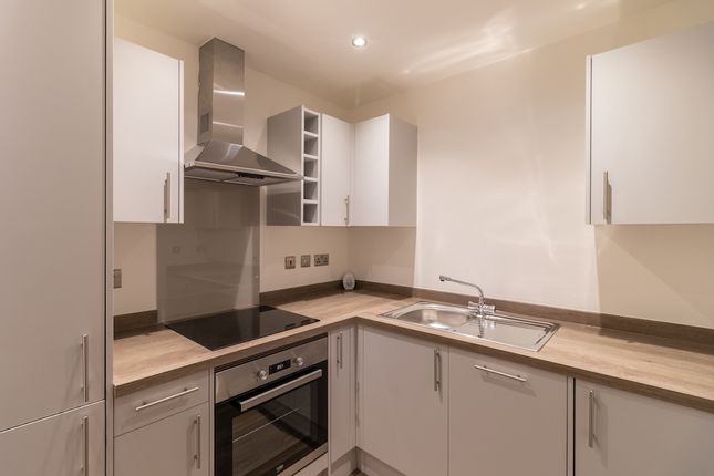 -A modern, fully equipped kitchen with a cooker, hob, washer, and integrated fridge-freezer