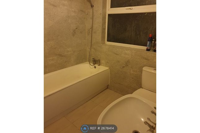 Bathroom consists of a bathtub/shower with toilet and hand basin. Fitted wall mirror.