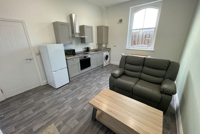 The kitchen is fully equipped with modern appliances and a fridge freezer. There are communal washing and drying facilities on site.