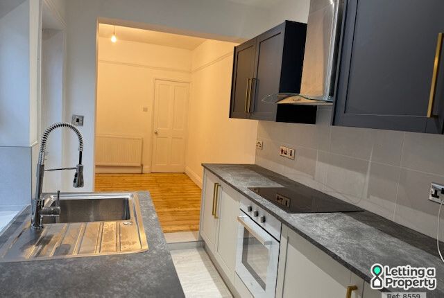 UPVC double glazed window to the front aspect, partially wood clad to half height, wall mounted oil fired radiator, newly fitted carpeted flooring, door to Kitchen.