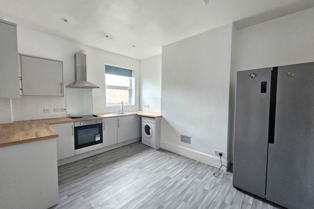 The flat features a modern kitchen with generous worktop and cupboard space, complete with oven, hob, fridge freezer, and washing machine. There’s also room for a dining table, making it a practical and sociable space. The living room is a good size, ideal for relaxing or entertaining.