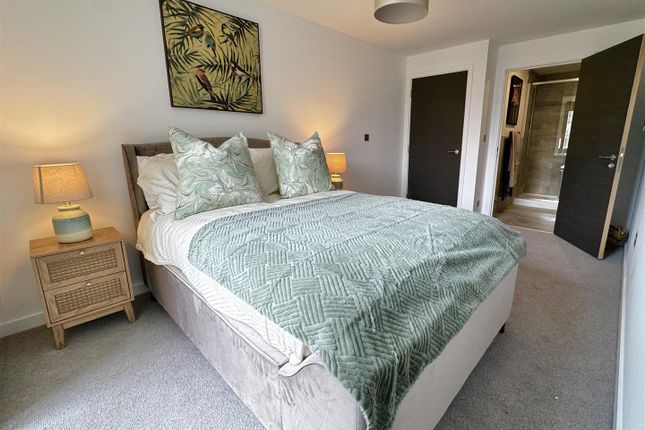 The master bedroom is fitted with internally illuminated wardrobes incorporating drawer units and has an en-suite shower room off the bedroom. The second double bedroom comes with fitted wardrobes. The generous house bathroom includes a mirrored vanity storage unit and heated towel rail.