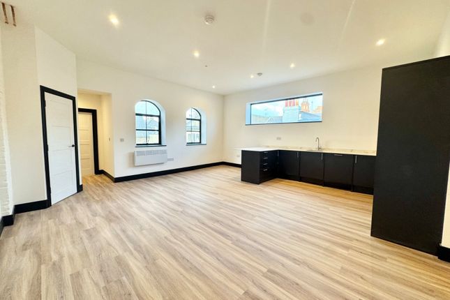 Inside, the apartment features soaring high ceilings, large feature windows, and a beautifully designed open-plan living space. The stylish contemporary kitchen is fully integrated and includes a central island, creating the perfect hub for cooking, entertaining, and socialising.