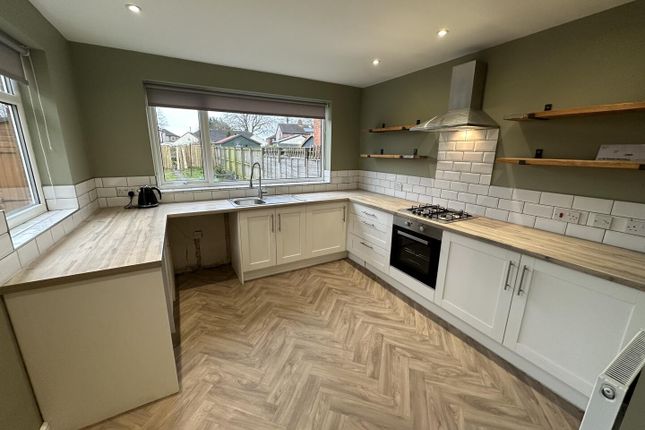 Upon entering the property you will come to the entrance porchway leading in to the living room. The spacious living room is neutral throughout with fresh carpets underfoot & cream walls. The modern kitchen is complete with an array of light wood wall & base units, contrasting work tops, electric oven, electric hob, space for white goods and there is even enough space to fit a dining room table.