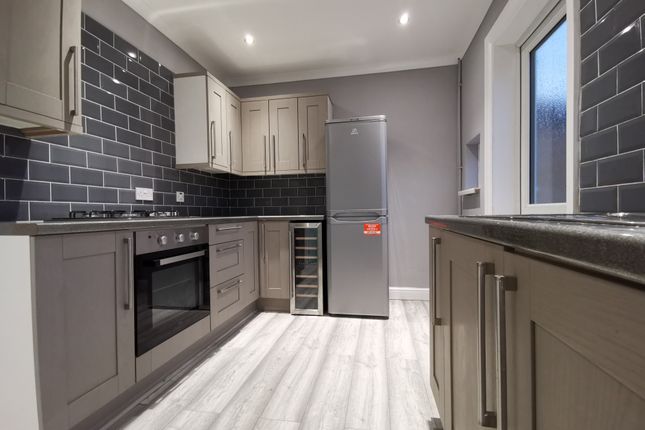 Range of fitted base and wall units. Built in oven, hob and overhead extractor hood. Fridge Freezer integrated. Door leads to the outside. Double glazed window to the rear. Plumbed for washing machine.