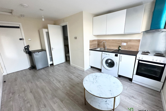 A studio flat situated above shops in High Street Ponders End, modern kitchen and décor, lounge, bedroom, kitchen combined, electric heating, unfurnished with white goods, close to Southbury Road Station. All inclusive of bills