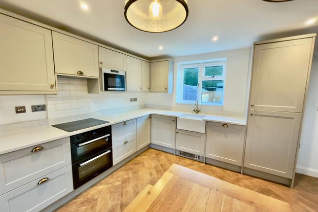 Stairs lead to the first floor where there are two double bedrooms and a stylish house bathroom with white suite and shower over bath.