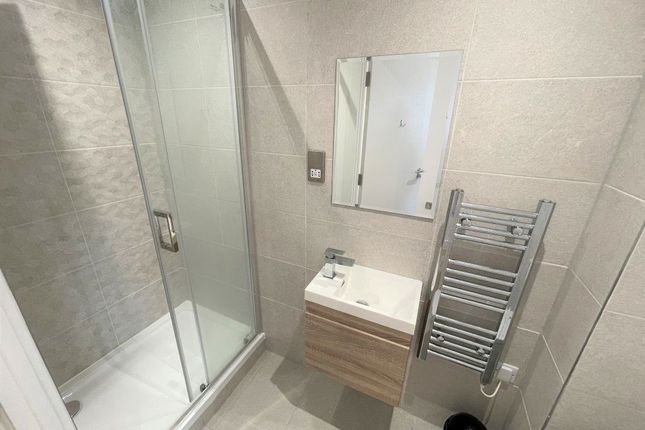 Private modern en-suite bathroom with a sleek three-piece suite, mirror, and quality fittings