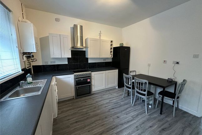 Lvt flooring, white emulsion walls & ceiling, hardwired & interlinked heat & co detector, six spotlights, two double light switches, three double sockets, three single sockets, kitchen comprises of a range of wall & base units, built-in oven & hob, composite sink/drainer, cupboard housing combi boiler, room thermostat, radiator, UPVC double glazed window to rear. Offers access to bathroom and the rear garden.
