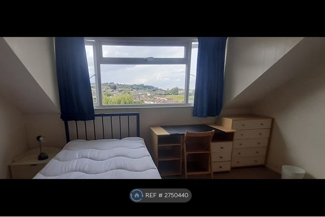 The house has five bedrooms, all fully furnished with bed, desk with chair, and storage. The living room has sofas and views over Bath. The kitchen is fitted, with fridge/freezer, oven with hob, and washing machine. There is a downstairs utility / storage room. There are two bathrooms, each with shower / bath, WC, and basin. There is a back garden with patio.