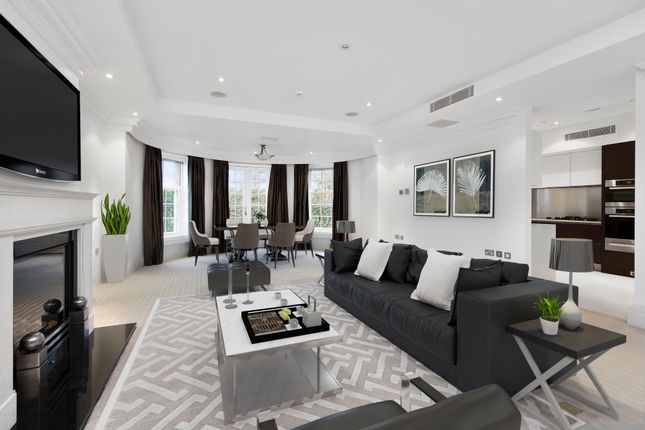 Designed with a thoughtful layout, the accommodation places the living and entertaining spaces to one side, with the bedroom suites arranged privately to the other. The generous open plan kitchen/dining room features a central island and three sets of doors opening onto a substantial private terrace that wraps around the apartment, seamlessly extending the living space outdoors. This flows through to a well proportioned reception room, also with direct terrace access.