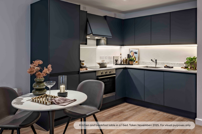 Your apartment living and kitchen area boasts floor to ceiling windows, modern furniture and integrated appliances ensuring a clean and tidy finish.