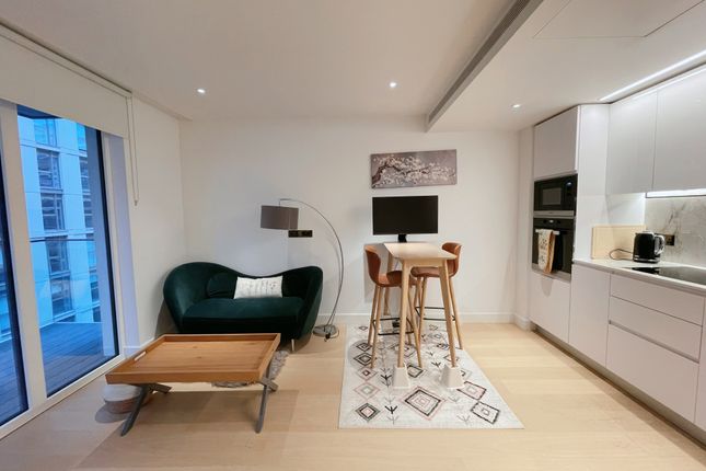As you step inside, the spacious living room greets you with its high ceilings, large windows, and tasteful decor. The fully fitted kitchen, equipped with high-end appliances, is a dream for any home cook. The bedroom, complete with abundant storage space, provides a peaceful retreat. The property also features a sleek, contemporary bathroom.