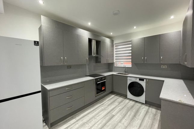 The spacious open‐plan kitchen and living area provides an inviting setting for daily living and entertaining. Sleek matt cabinetry, integrated appliances and generous worktop space create a modern and functional kitchen, while the living area is enhanced by excellent natural light and direct access to a private balcony with open views across the surrounding neighbourhood.
