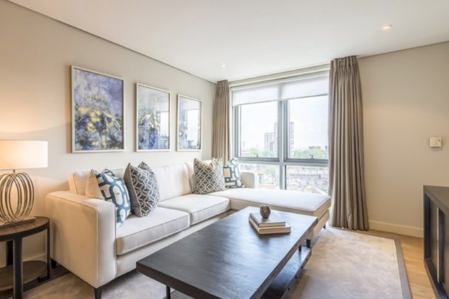 Newly refurbished two bedroom two bathroom apartment in South Kensington, with a garden or London street view, offers 1250 sq ft of living space and integrated living, dining and kitchen areas.