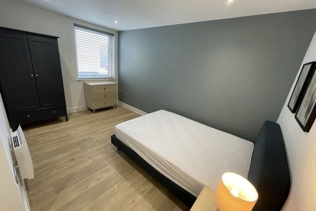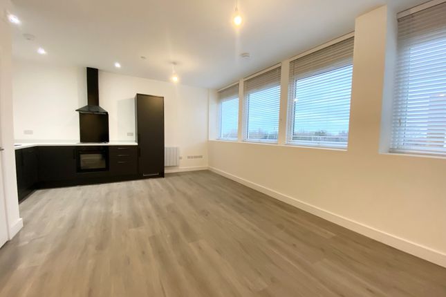 The flat is offered unfurnished and features a bright open-plan kitchen and lounge area, a well-proportioned bedroom, and a modern shower room. The kitchen is well equipped with a fridge, oven and hob, and washer-dryer, making it ready to move straight into.