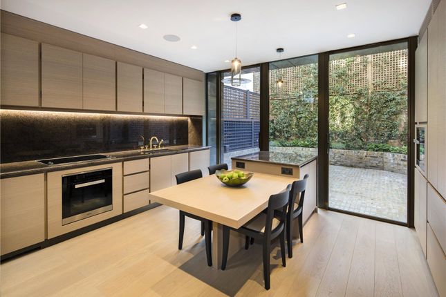 The lower ground floor opens into a superb open-plan kitchen and reception space — the heart of the home — ideal for family life and entertaining alike. The kitchen is fully integrated with premium appliances, extensive storage and generous worktop space, flowing seamlessly into the reception area. A separate utility room sits neatly tucked away, keeping everyday living clutter-free. The raised ground floor provides a second, beautifully proportioned reception room with wonderful ceiling height and a more formal feel — perfect as a principal sitting room or entertaining space. From here, doors lead out to a private patio garden, creating a rare indoor-outdoor connection in the heart of Chelsea. The rear garden is a real highlight, benefitting from a private gate with direct access onto Margaretta Terrace — a rare and highly valuable feature for houses on Oakley Street, offering discreet rear access for family life, deliveries and staff.