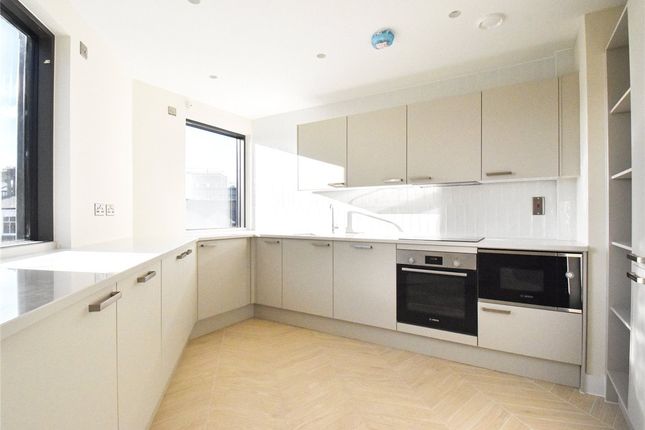 The apartment features two double bedrooms, including a principal bedroom with a ensuite shower room, alongside a further modern bathroom. The open-plan sitting and dining area flows seamlessly onto the balcony. Oak flooring enhances the reception spaces, adding warmth and elegance throughout.