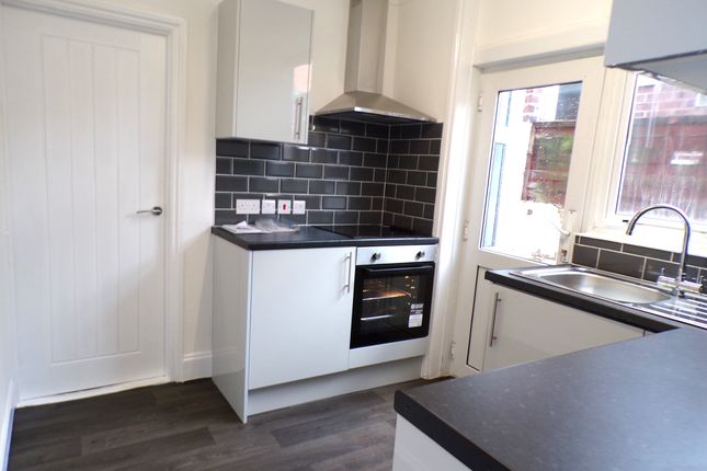 The bathroom is a plain white suite with shower over the bath, the kitchen is a well presented shaker style design with fitted units, integrated hob and oven, and space for further white goods. At the rear of the property a large conservatory frames the back of the house.