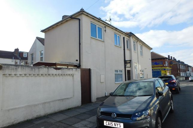 The entrance of the property, access via external brick built stairs, leads you in to the hallway. From here, the property offers you a large bright lounge with bay window and feature fireplace. The front bedroom is a small double bedroom and the master bedroom is a generous double at the rear of the property.