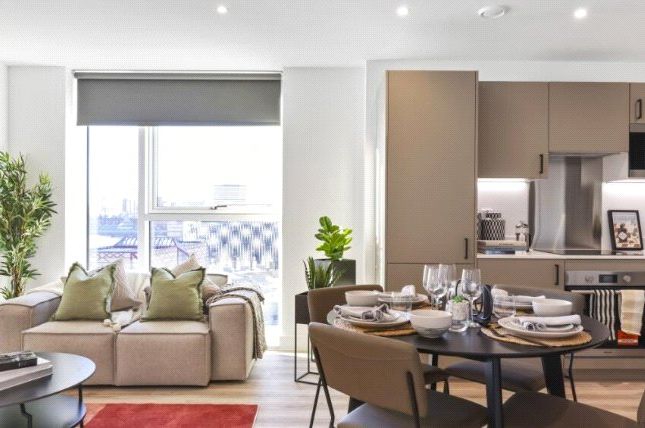 The property features a bright open-plan kitchen and reception space with integrated appliances, stone worktops, and contemporary finishes throughout. Large doors open onto a private terrace, providing excellent natural light and outdoor space.